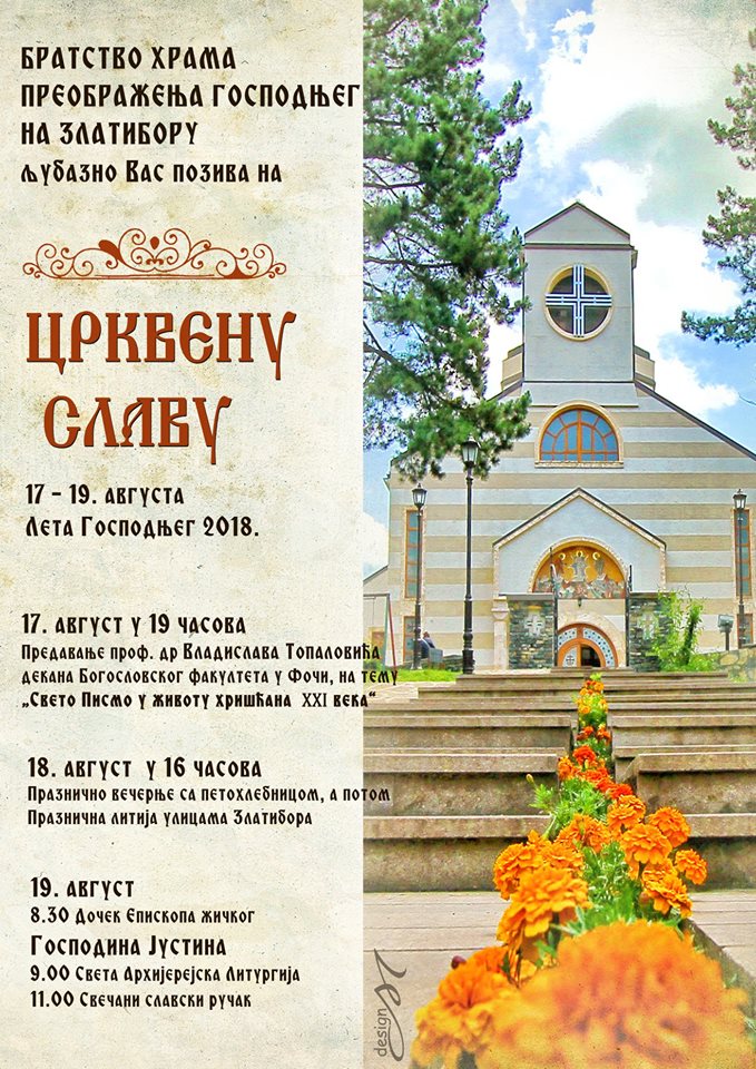 - августа у 16,оо – Празнично вечерње са петохлебницом, а потом Празнична литија улицама Златибора