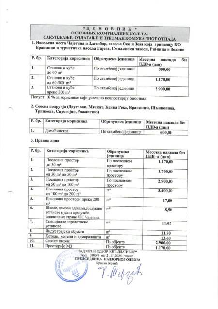 Нови ценовник налази се на фотографији у галерији.