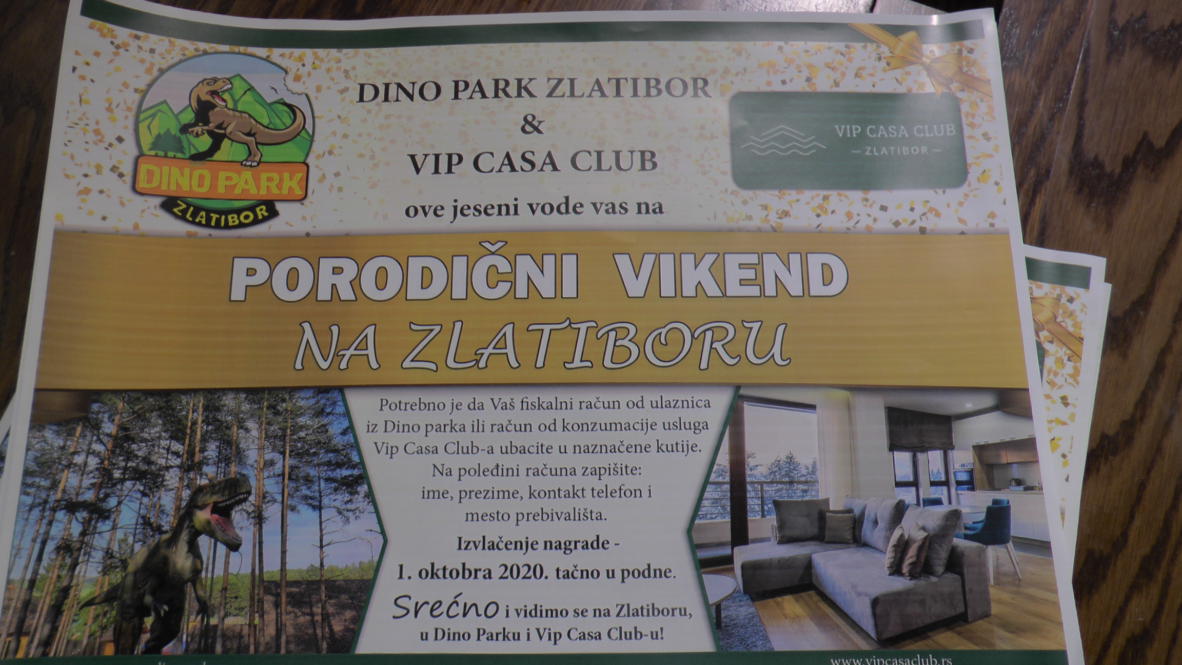 "Наградна игра кренула је 1. септембра и трајаће све до 30. октобра. Наши посетиоци и гости ВИП касе моћи ће да учествују у њој тако што ће на полеђини свог фискалног рачуна оставити своје податке и убацити их у назначене кутије које ће се налазити на ове две локације, а 30. 10.би јавно извукли породицу коју доводимо на бесплатан породични викенд".