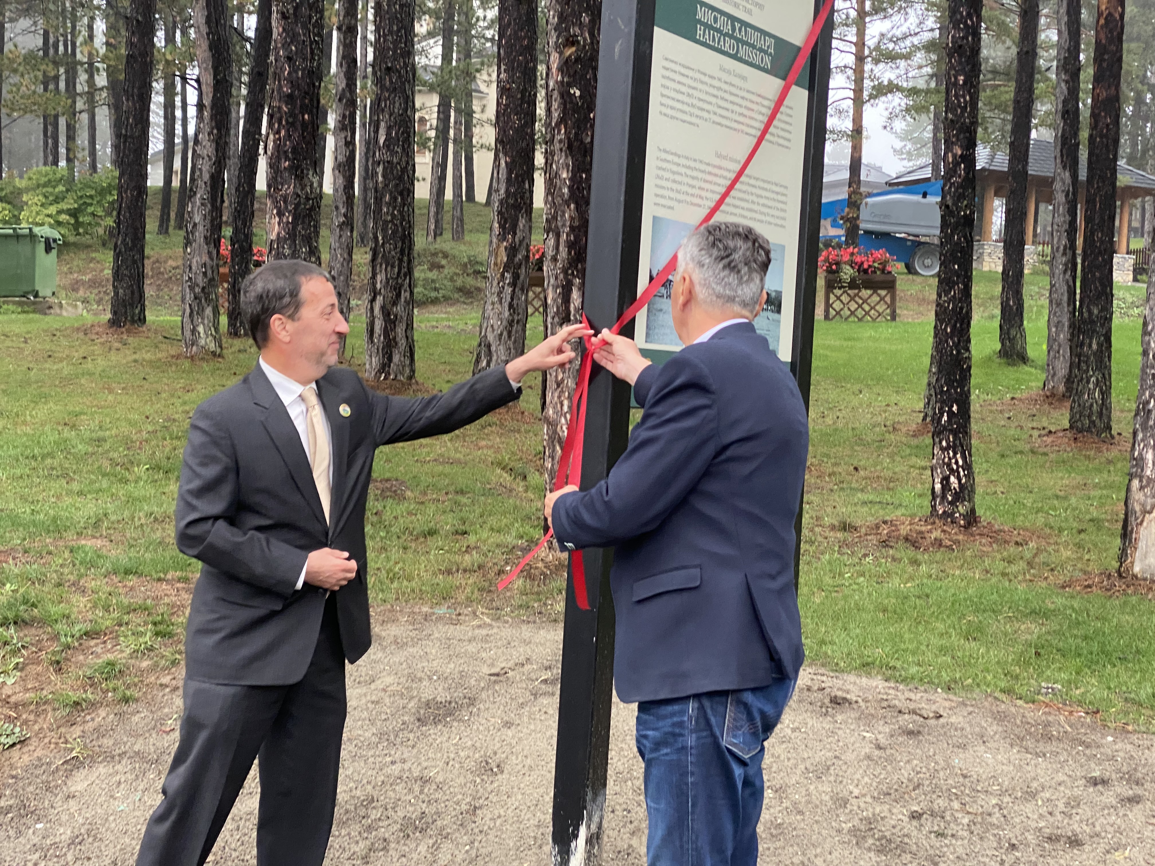 "Желим да се на почетку захвалим председнику Општине, господину Стаматовићу, и општини Чајетина за партнерство које смо успоставили поводом овог догађаја. Након 77 година ми смо данас овде да се захвалимо људима који су помогли америчким летачима током другог светског рата", истакао је Џон Капело, председник Удружења операција Халијард.