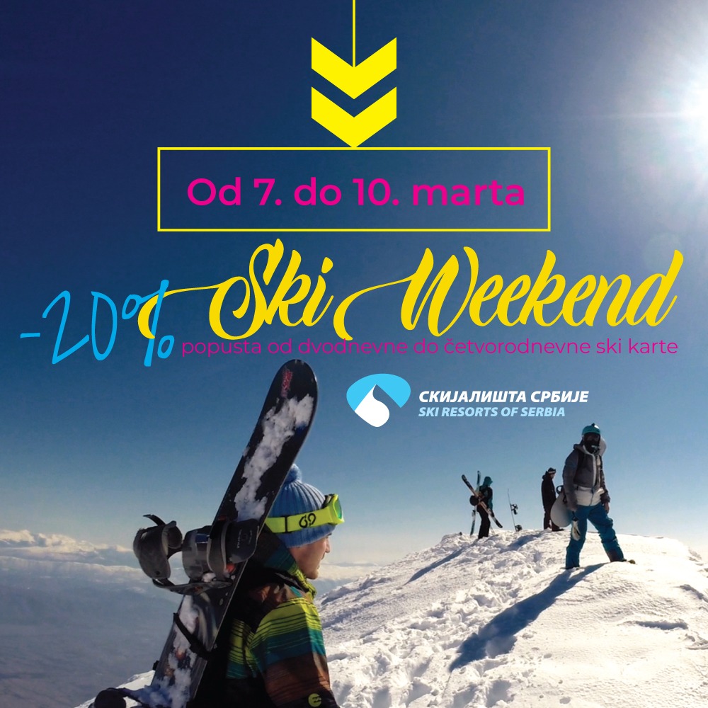 Промотивни ски викенд у ски центрима Копаоник, Стара планина и Торник почиње у четвртак, 7. марта и траје до 10. марта. У оквиру овог промотивног периода, скијаши и бордери који се одлуче да проведу продужени викенд на снегу у неком од ски центара, могу да искористе попуст од 20 посто на дводневне, тродневне и четвородневне ски карте.