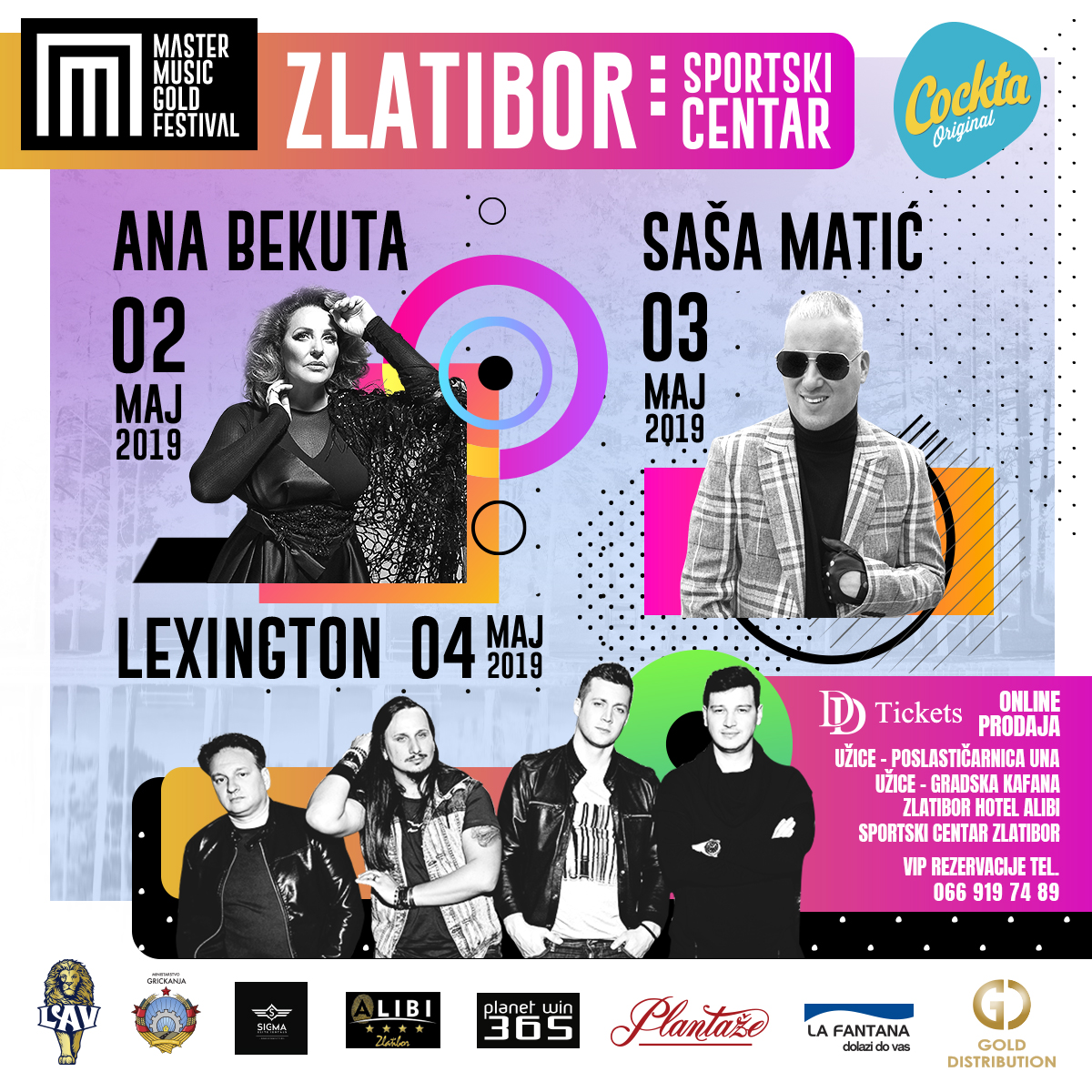 Све оне који одлуче да првомајске празнике проведу на Златибору, очекује пријатно изненађење. На овој атрактивној туристичкој дестинацији, након недавно одржаних концерата Дина Мерлина и Северине, организује се фестивал "Мастер мјузик голд", у оквиру кога ће током три вечери наступити Ана Бекута, Саша Матић и "Лексингтон бенд".