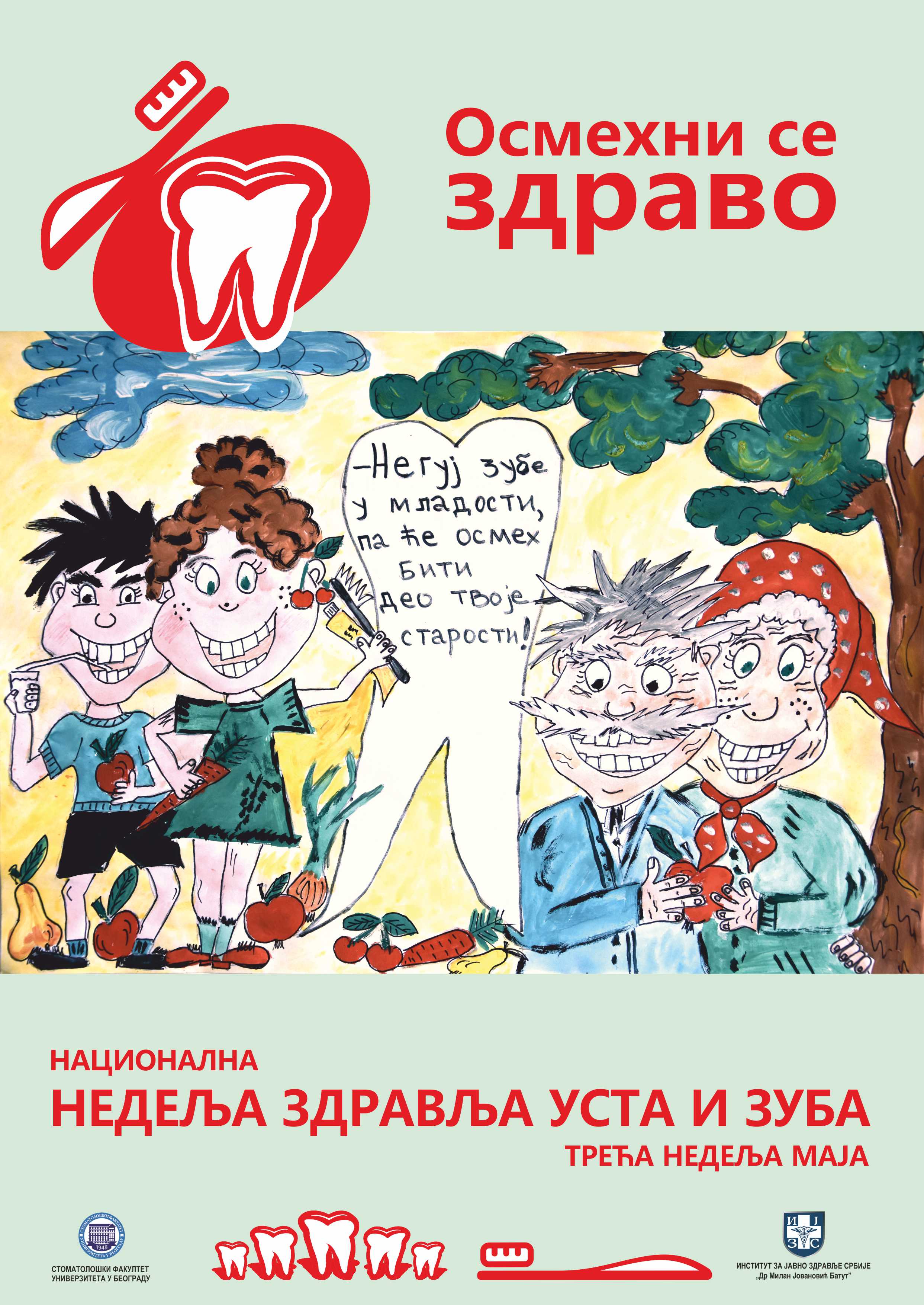 Недеља здравља уста и зуба се традиционално обележава у трећој недељи маја месеца, од 1991. године. Овогодишња кампања се обележава од 13. до 19. маја под слоганом „Орално здравље чувамо од најранијег узраста.” Као и претходних година, у оквиру кампање, Институт за јавно здравље Србије „Др Милан Јовановић Батут”, мрежа института/завода за јавно здравље у Републици Србији, Стоматолошки факултет Универзитета у Београду, расписују конкурс за избор најбољег литерарног састава и ликовног рада у оквиру кампање 29. Недеље здравља уста и зуба 2019. године, на тему: „Орално здравље чувамо од најранијег узраста.” Конкурс је намењен деци у вртићима и ученицима основних школа.