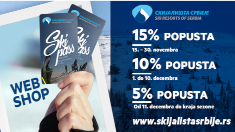 Скијалишта Србије су у новембру покренули нову акцију за све љубитеље скијања. За све скијаше који у новембру купе ски карте ски карата за сезону 2020/21 путем wеб схопа Скијалишта Србије имаће попуст од 15% на цену карата. За оне који ски карте буду куповали он лине до 10.децембра предвиђен је попуст од 10%, а до краја сезоне ће важити попуст од 5% на цену ски карата преко wеб схопа Скијалишта Србије. Попусти у претпродаји ски карата корисници могу искористити искључиво онлине, путем wеб схопа Скијалишта Србије и искључиво платним картицама.