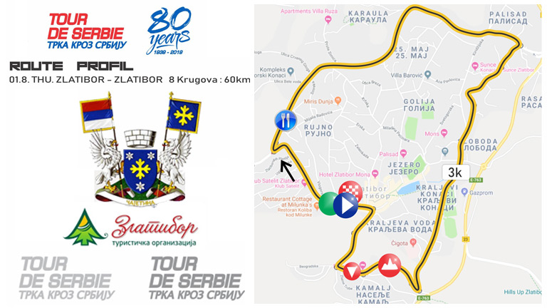 Током одржавања трке на Златибору, у четвртак 1. августа у периоду од 10 до 11.30 часова биће обустављен саобраћај, у делу улица Миладина Пећинара, Крфска, Јованке Јефтановић, , Рујанска, Ћалдов пут, Спортова и Алексе Поповића. Старт и циљ трке планиран је код ресторана Мој завичај, затим траса иде Рујанском улицом, кружним путем, наставља се поред хотела Олимп, хотела Торник и поред пијаце. Након Златибора, бициклистички караван ће се упутити ка Мионици.